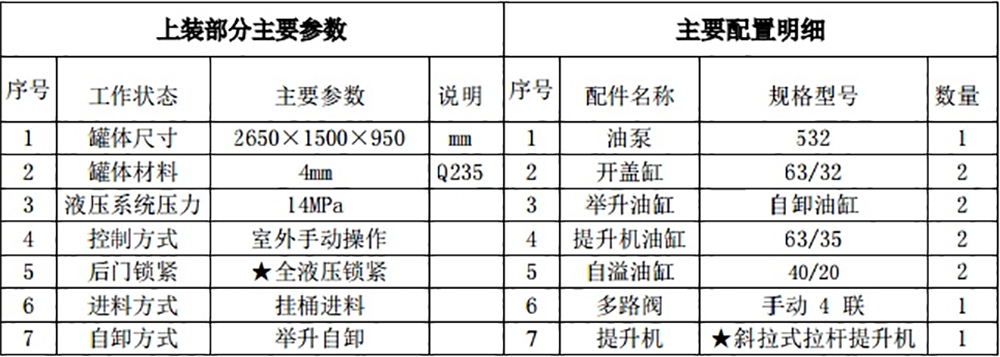 凱馬藍(lán)牌4方餐廚垃圾車 車輛主要技術(shù)參數(shù)