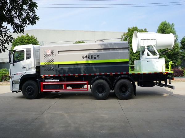 2.抑塵裝置采用國(guó)內(nèi)知名品牌,成霧量大、粒徑范圍大。霧炮噴射距離遠(yuǎn),且能實(shí)現(xiàn)俯仰角度可調(diào),滿足不同噴射距離工況的需求。使用副發(fā)動(dòng)機(jī)驅(qū)動(dòng),傳動(dòng)效率高。操作簡(jiǎn)單,各功能通斷控制為電控氣動(dòng),一鍵切換,無(wú)需手動(dòng)。