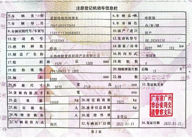 2022年1月,東風(fēng)天錦中聯(lián)重科壓縮垃圾車,國六,15方,康機230馬力(6缸機),