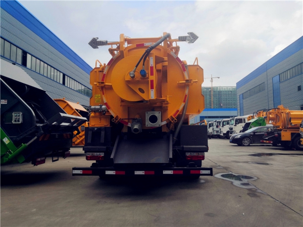 吸污部分:7方污罐,罐體6mmQ235優(yōu)質(zhì)碳鋼,配淄博SK-12水循環(huán)泵,8米吸污管一根,進氣管加過濾網(wǎng),防溢閥加高,后蓋卡扣鎖緊,前視污亮管,后尾部加裝1個力拓牌100mm的球閥吸污口150mm排污口,罐體帶舉升功能,后門帶液壓開啟。