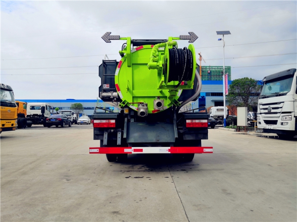 吸污部分:3.8方污罐,罐體5mmQ235優(yōu)質(zhì)碳鋼,配淄博SK-9水循環(huán)泵,8米吸污管一根,進(jìn)氣管加過濾網(wǎng),防溢閥加高,后蓋卡扣鎖緊,前視污亮管,后尾部加裝1個(gè)力拓牌100mm的球閥均帶出口,罐體帶舉升功能,后門帶液壓開啟。