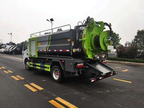 清洗部分:3方水箱,采用4mmQ235優(yōu)質(zhì)碳鋼板,水箱兩側(cè)消防接口進(jìn)水,工具箱一個(gè)。采用德國(guó)品浮高壓泵215升流量,22兆帕,配60米內(nèi)徑19#高壓管,10個(gè)大小不同噴頭一套, 后置式清洗卷盤(pán),帶淋管裝置(用于淋洗高壓管疏通管道過(guò)后上面殘留的污物),帶氣吹水功能(用于吹出每次高壓管工作完以后內(nèi)部殘留的水漬,防止天冷結(jié)冰影響下次使用)